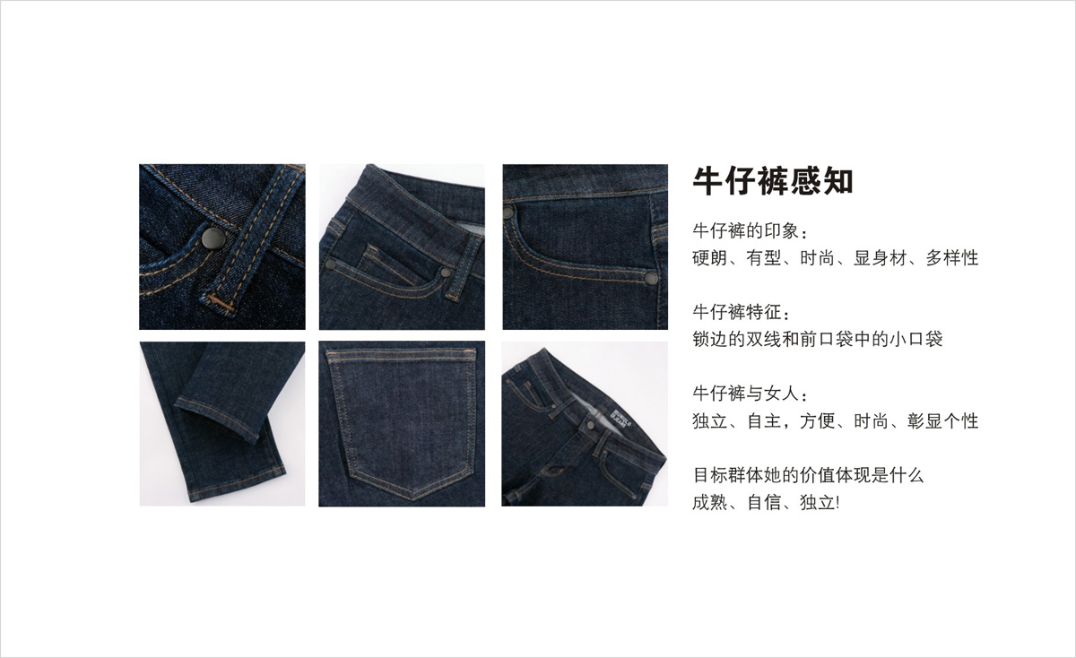 項目背景:一百多年來(lái)牛仔褲以其快活而充滿(mǎn)激情的獨特風(fēng)格,以其充滿(mǎn)青春的滲透性,始終體現一種經(jīng)典和優(yōu)美。而女人的衣櫥里永遠少一條牛仔褲,不同品牌的牛仔褲有著(zhù)不同的風(fēng)格,性感的、時(shí)髦的、個(gè)性的、夸張的、隨意的、簡(jiǎn)約的。